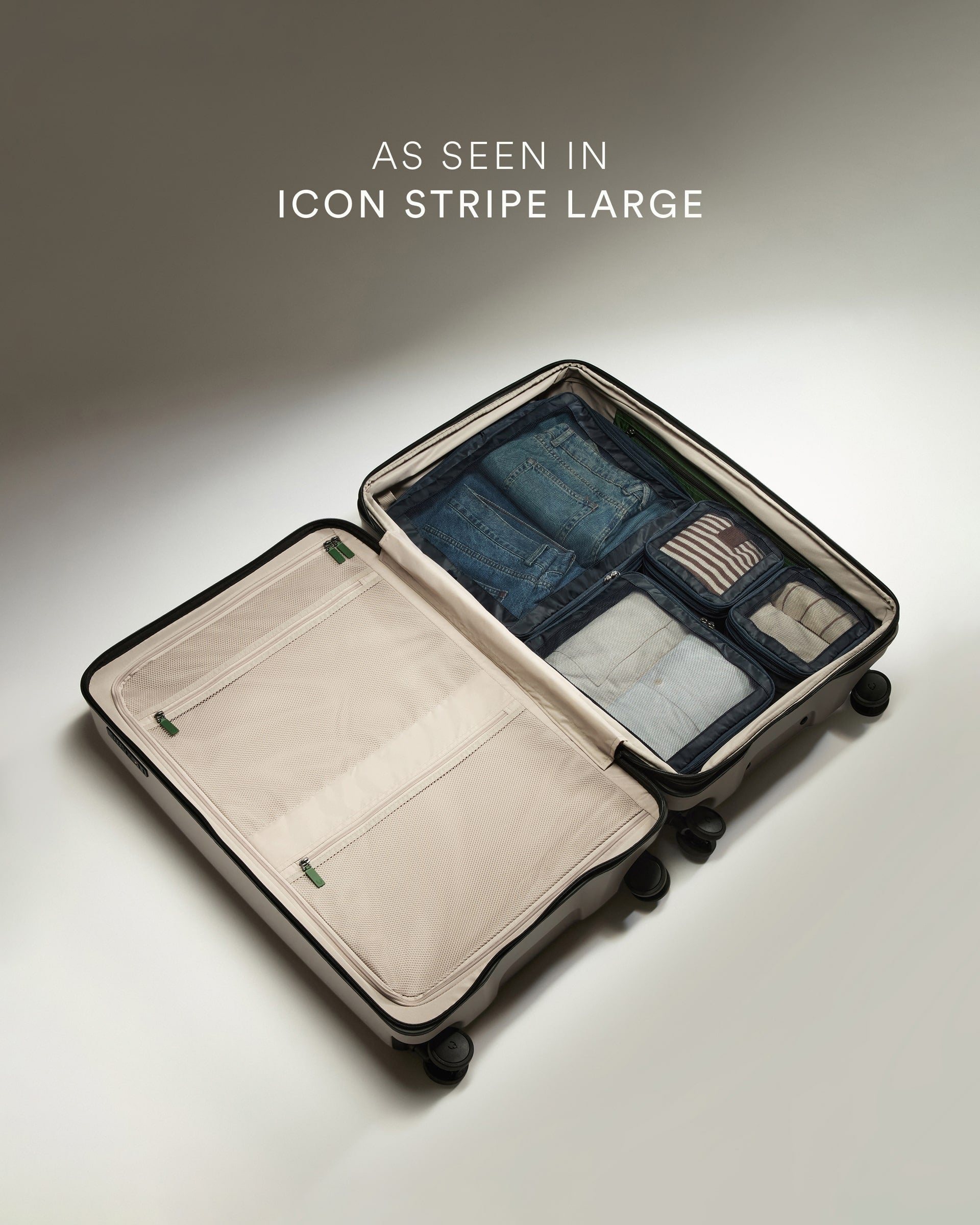 The ultimate travel hack, packing cubes are the perfect way to organize your luggage. With an extra strong compression zip so you can pack more in, they’re the perfect size and color to coordinate with our Icon Stripe luggage.